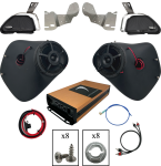 Package includes same SinisterSound speakers used on all our demo bikes, Diamond Micro 2v2, mounting bracket, grills, RCA cables, power and ground harness.