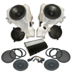 Everything you need for your Ultra in one complete kit! Front Fairing Kit with Moto800. Kit Includes (4 speakers, 2 tweeters, crossovers, grills, spacers), Breakout Harness with High Level Inputs, Power and Ground, Remote Turn On. *Pods shown for reference/NOT INCLUDED* This kit is for bikes that will be flashed.
